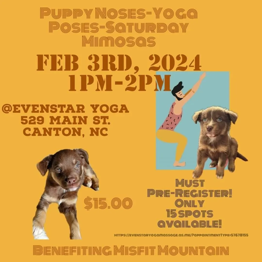 Come join us Saturday February 3rd at 1 for some adorable puppy love and a chill yoga flow. If yoga isn't your thing, no problem! Just hang on your mat and pet some puppies 😉🤣